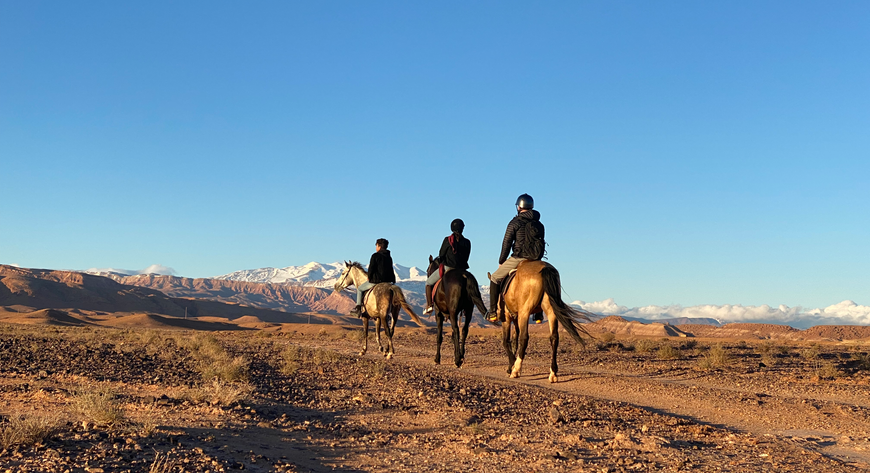 After a traditional Moroccan breakfast, we will set off on a beautiful track that takes us to the village of Ankhsa,. This offers spectacular views of the distant mountains, which are capped with snow in the winter and early spring. The route follows the valley and allows plenty of opportunity to trot and canter.